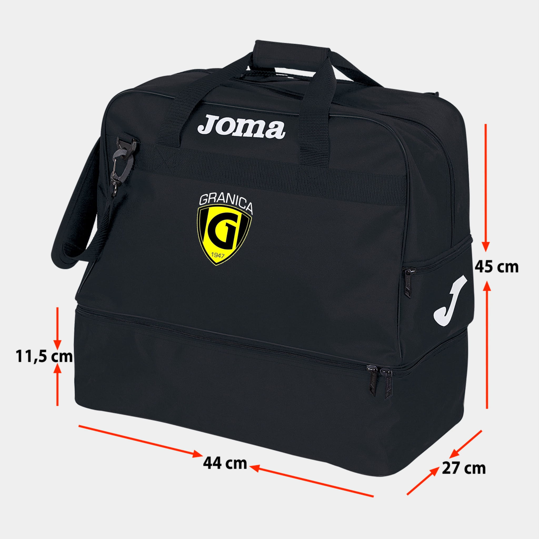 Torba treningowa z wyściełaną częścią wewnętrzną w środku. W cenę wliczono nadruk herbu.